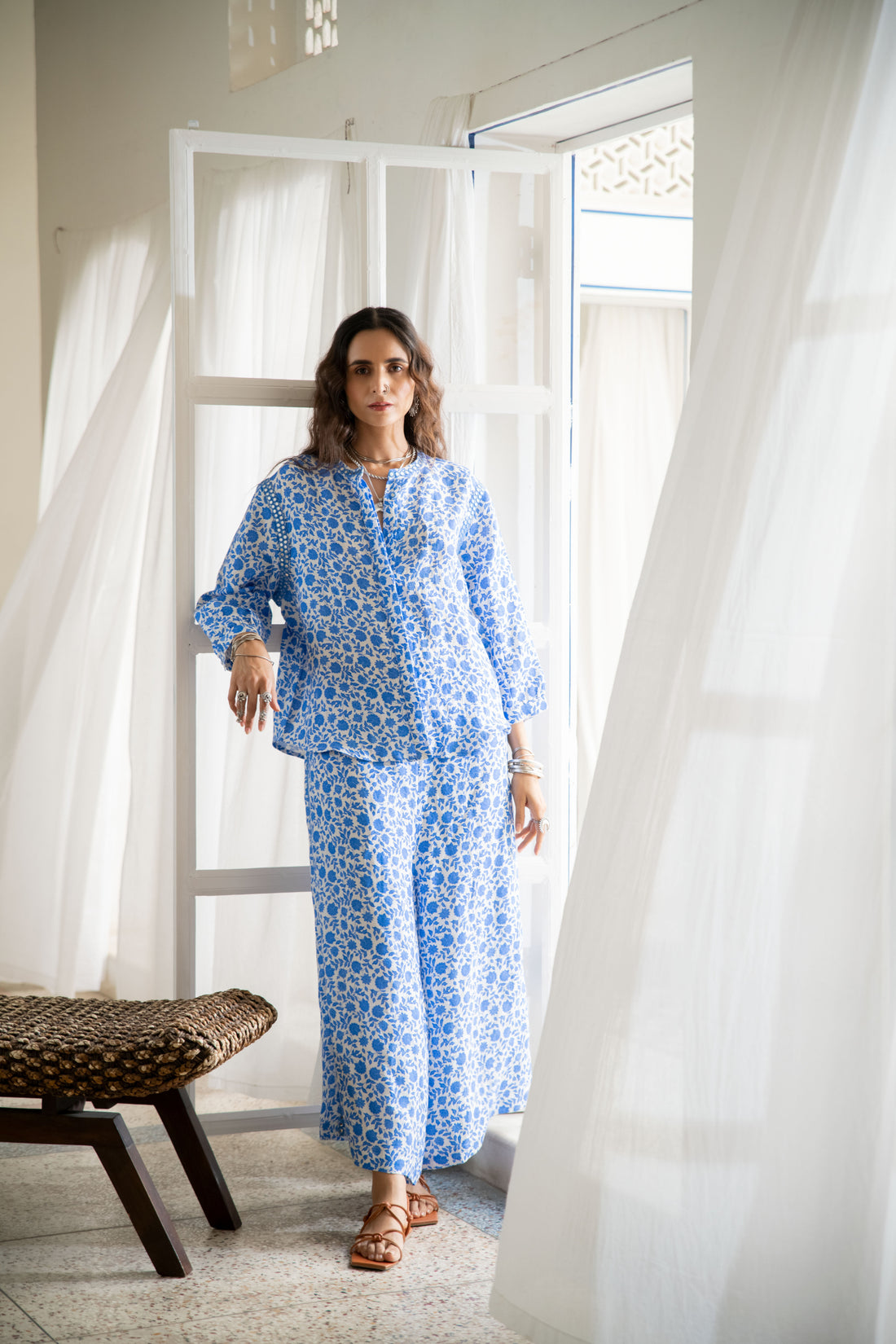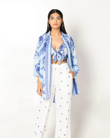 The Azure Set by Naav is a two-piece co-ord crafted in soft cotton with Schiffli...