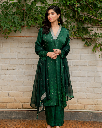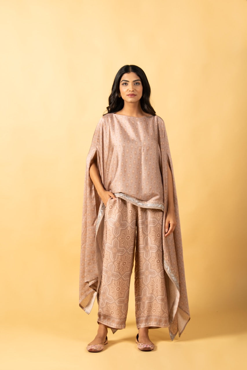 Naav’s Chameli Cape Set in taupe blends traditional charm with modern design. Featuring a free-flowing...