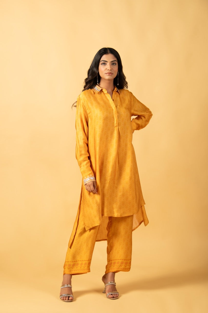 NAAV's classic placement floral orange set is designed with a structured shirt collar, button-down front,...