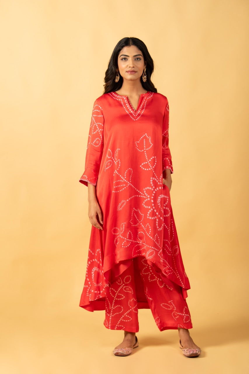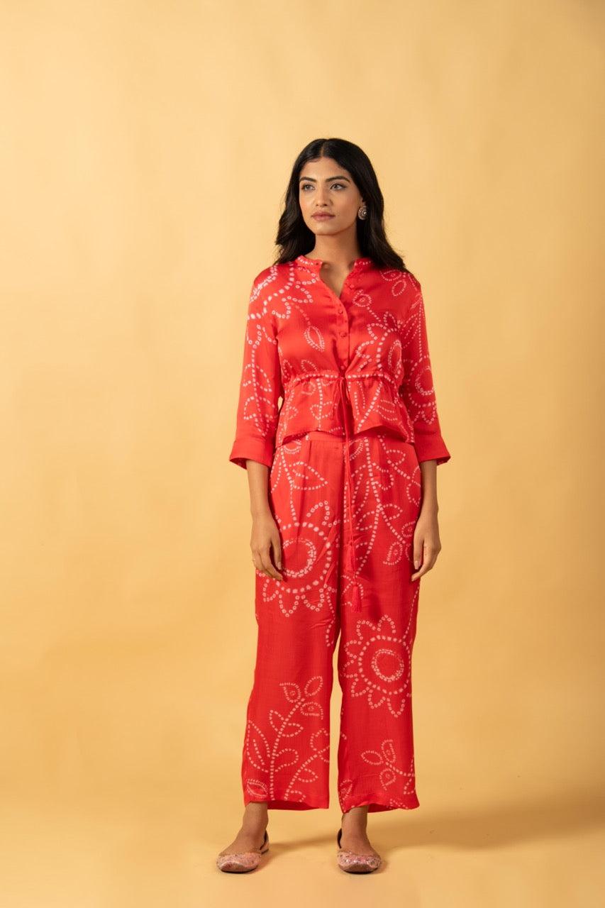 The Naav Gulnar Co-ord Set in beautiful red features a traditional bandhani print, offering a...