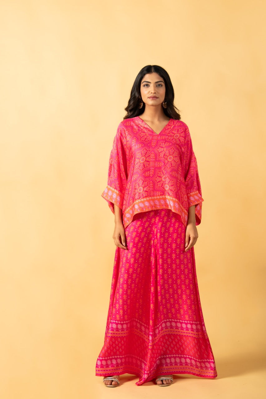 Naav’s festive kaftan in a vibrant pink floral print is designed for effortless elegance. This...
