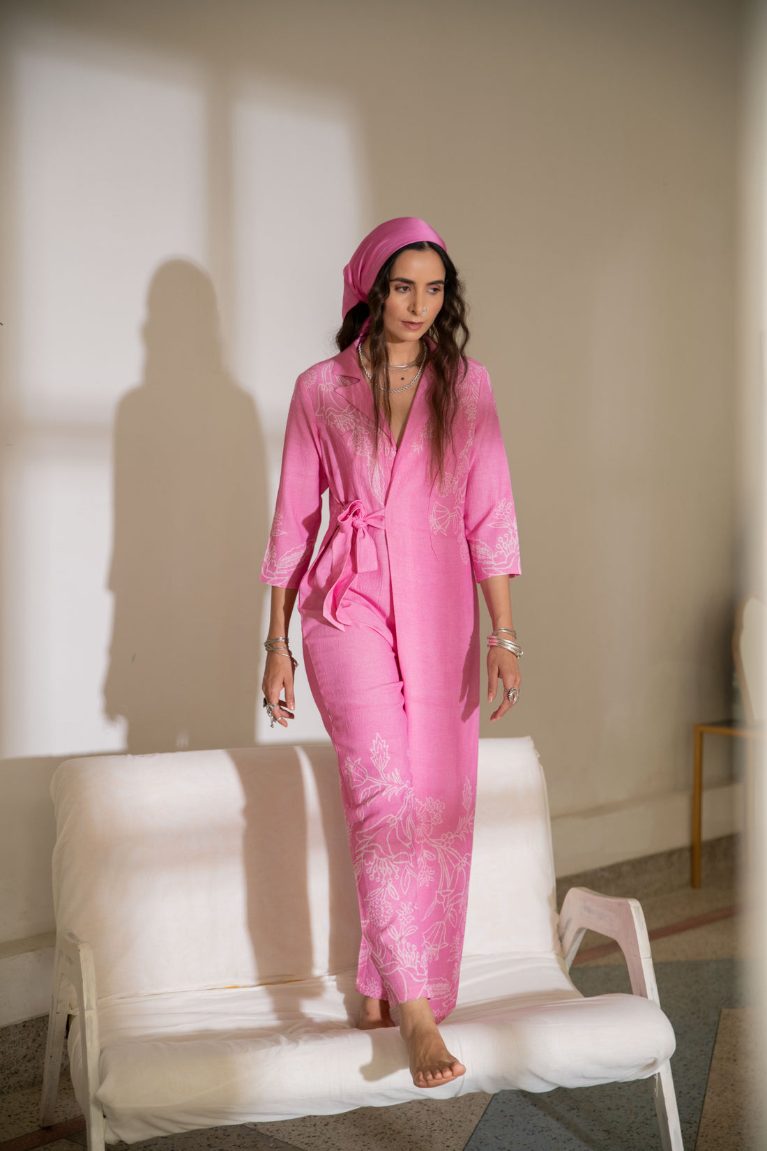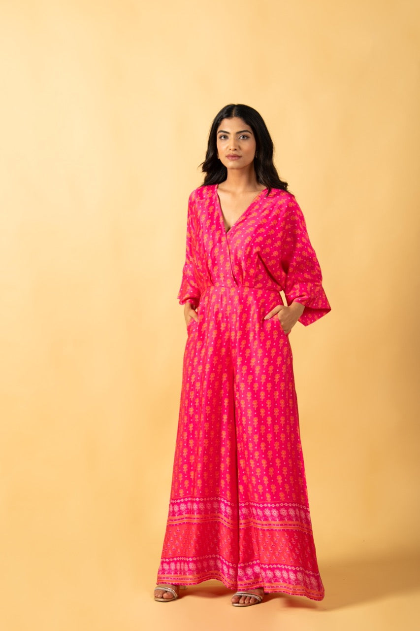Elevate your wardrobe with the Naav Musk Jumpsuit in vibrant rani pink, a perfect fusion...