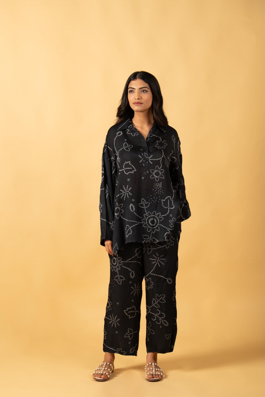 Champa Co-ord Set in black blends traditional charm with modern sophistication. Featuring a classic bandhani...