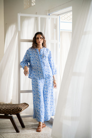 Azure Set-Blue Printed Pure Cotton Schiffli Co-ord Set
