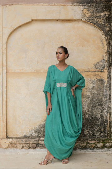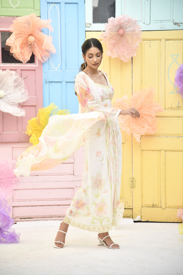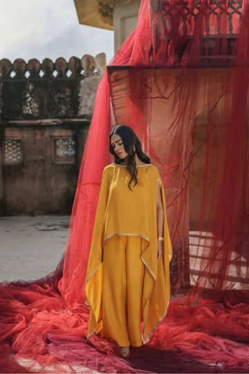 Naav’s Chameli Cape Set in taupe blends traditional charm with modern design. Featuring a free-flowing...