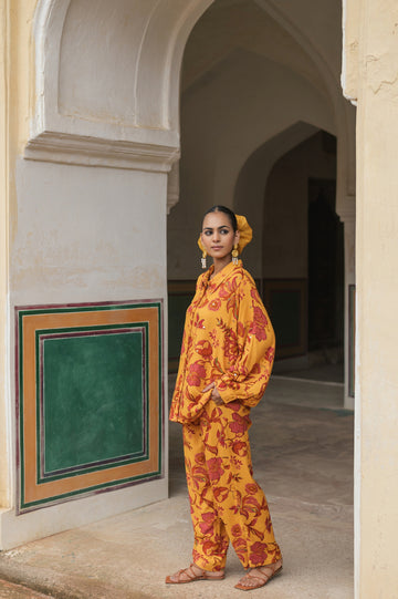 Dawn Set - Yellow Printed Linen Co-ord Set