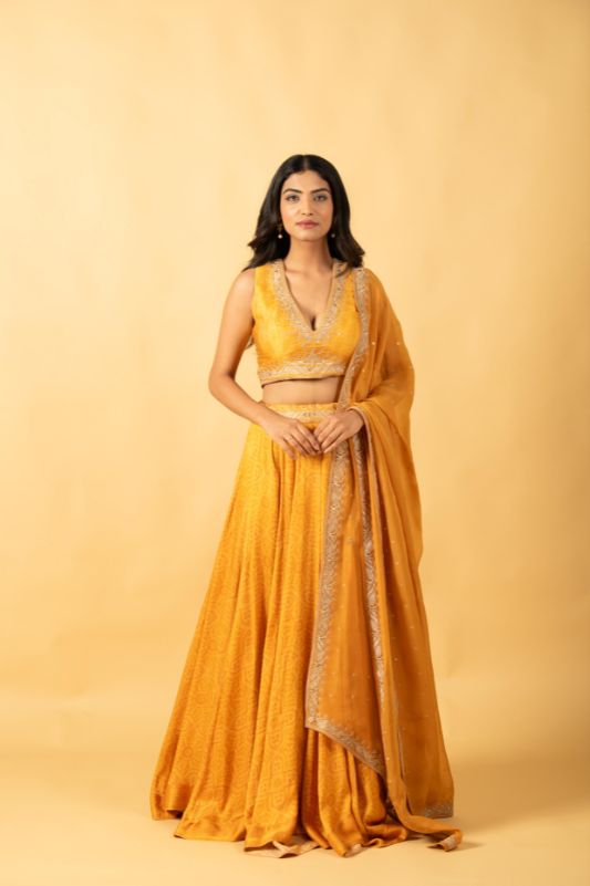 The Naav Gulnar Co-ord Set in beautiful red features a traditional bandhani print, offering a...