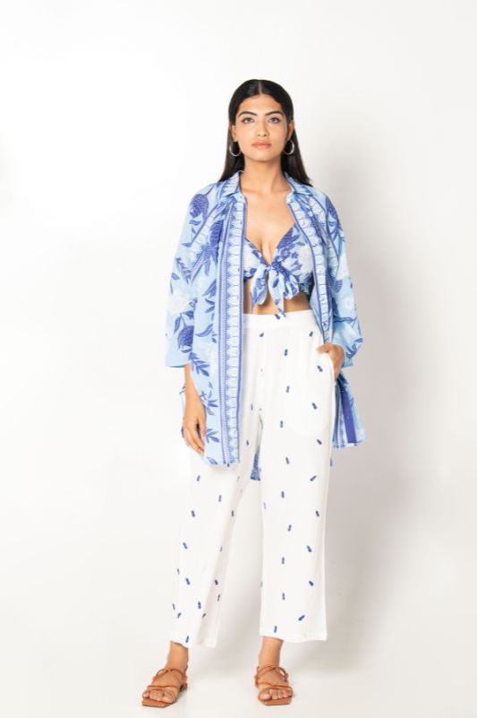 The Azure Set by Naav is a two-piece co-ord crafted in soft cotton with Schiffli...